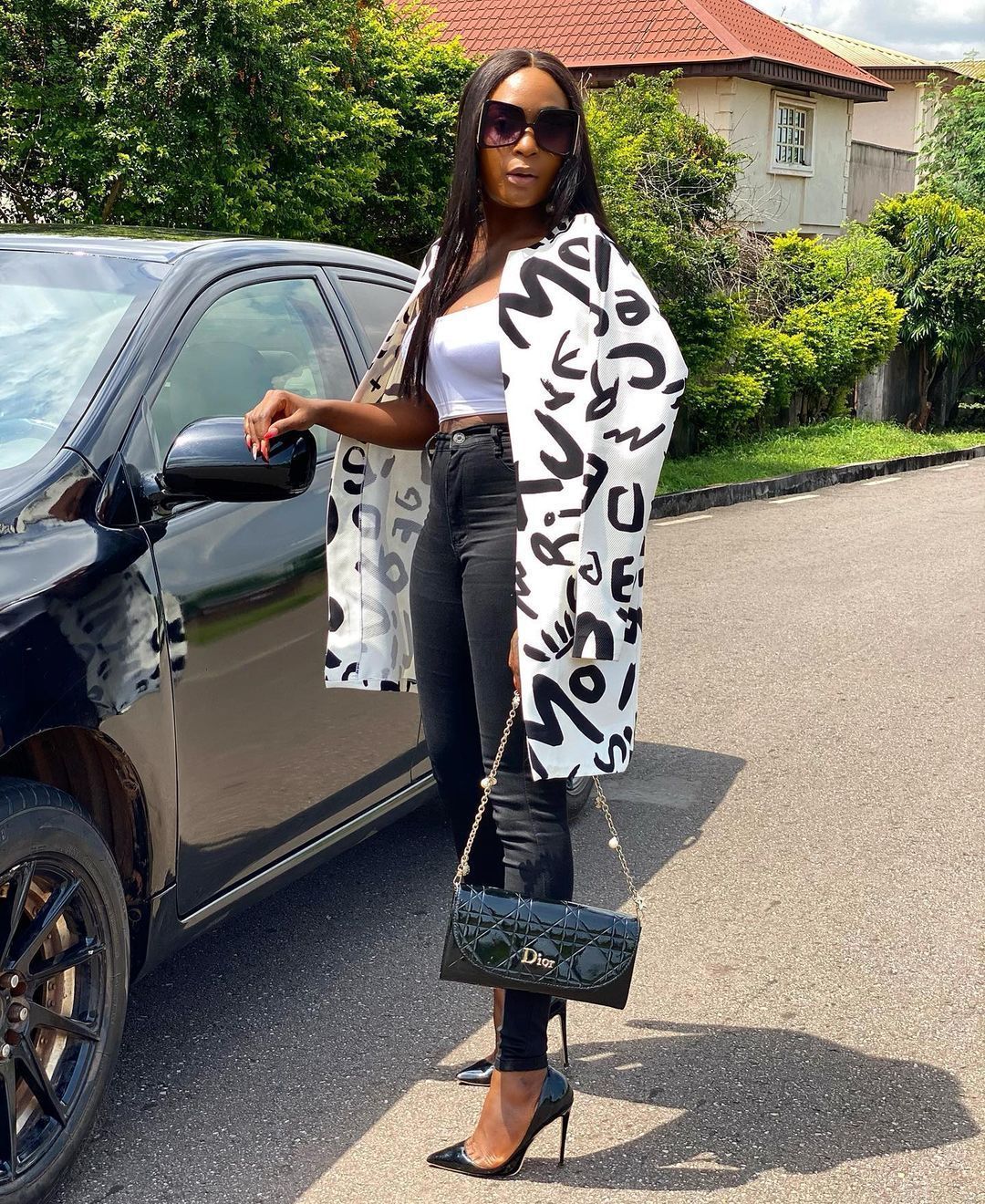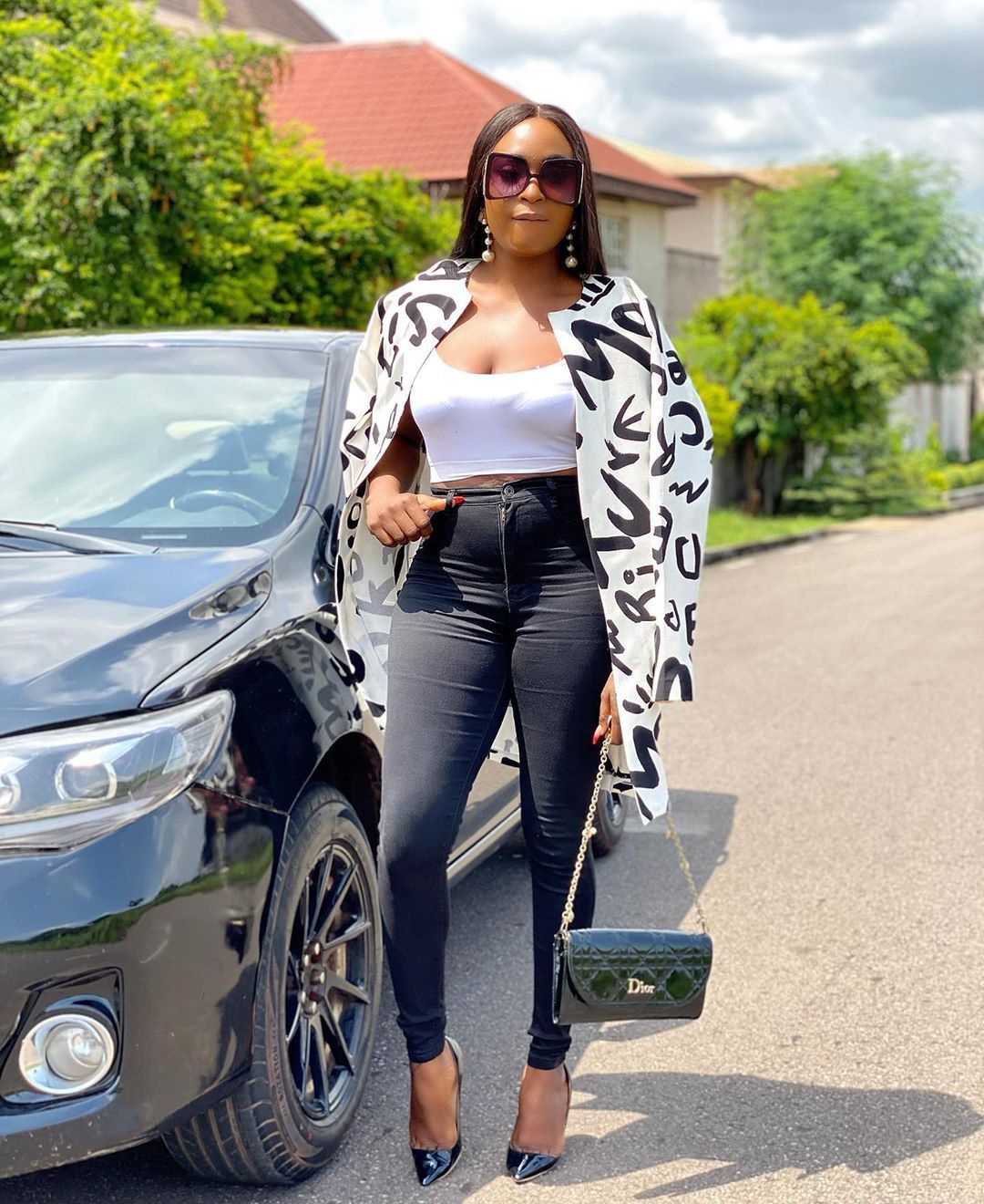 The suit collar adds a touch of sophistication.